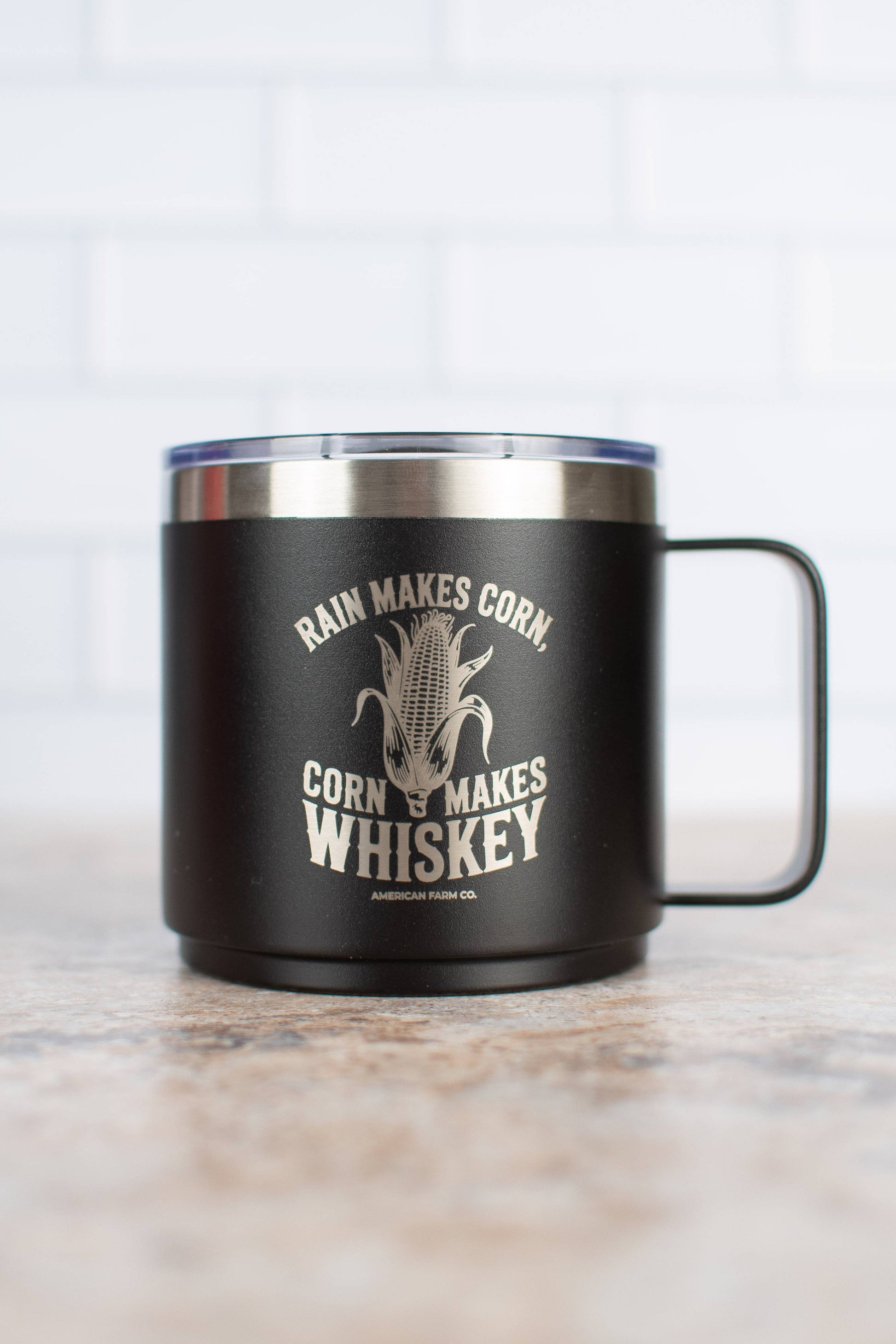 Sip your favorite drink with a smile using this black 16oz mug featuring a playful "rain makes corn, corn makes whiskey" slogan and a charming corn graphic. The magnetic slider lid keeps your beverage secure and spill-free, perfect for on-the-go moments or cozy breaks. Celebrate the simple joys of nature and good whiskey with every sip!